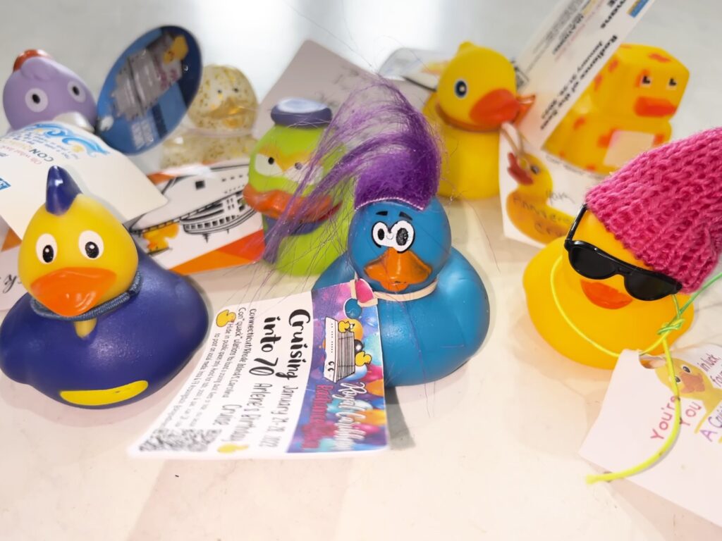 A duck hunt? YES! Cruising Ducks is a very fun trend that started on Carnival cruise ships and has spread to many different cruise lines. People take little rubber duckies, attach a tag naming the ship and cruise dates, and hide them all over the ship. It’s a fun activity for kids and adults alike. Some folks even make their own ducks out of fabric, or they crochet them.